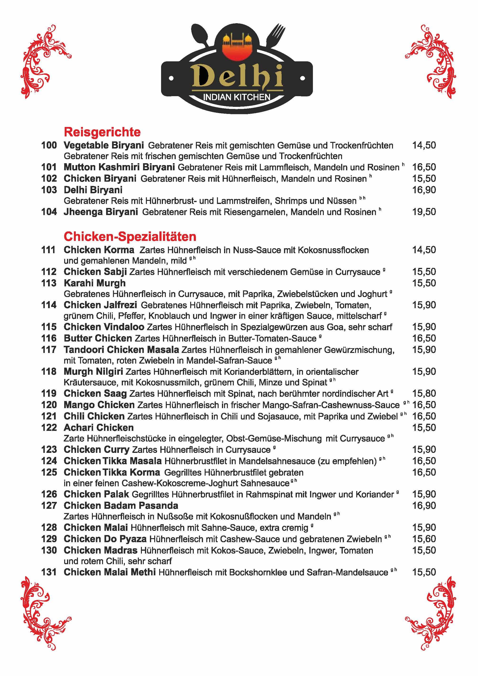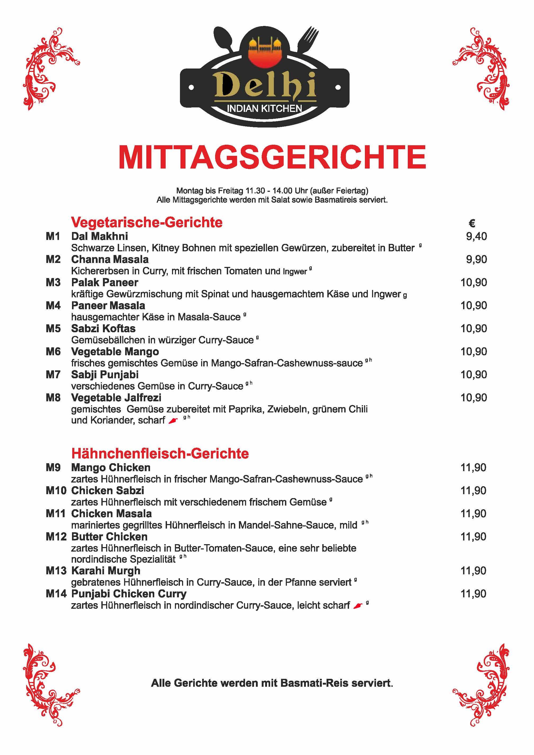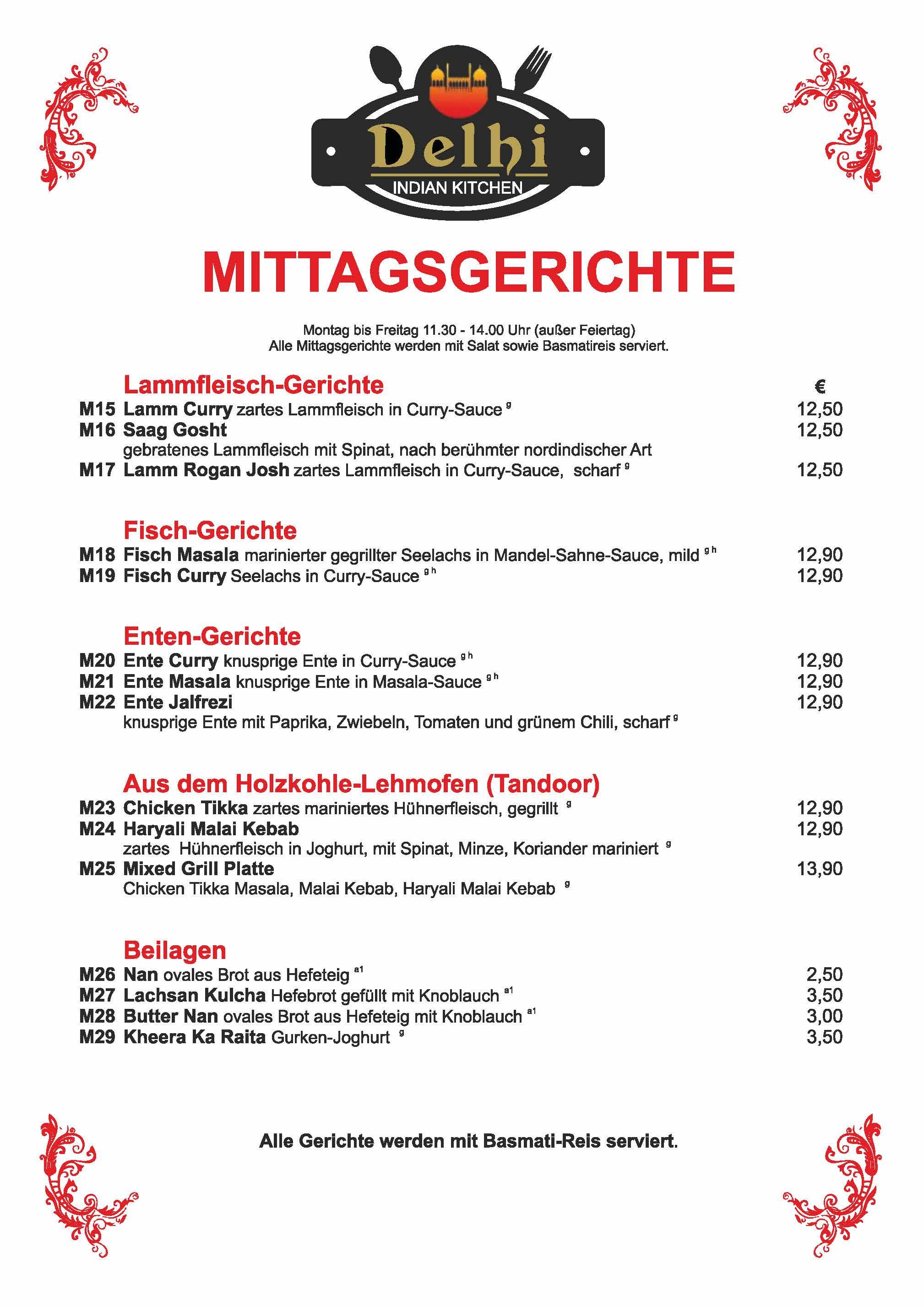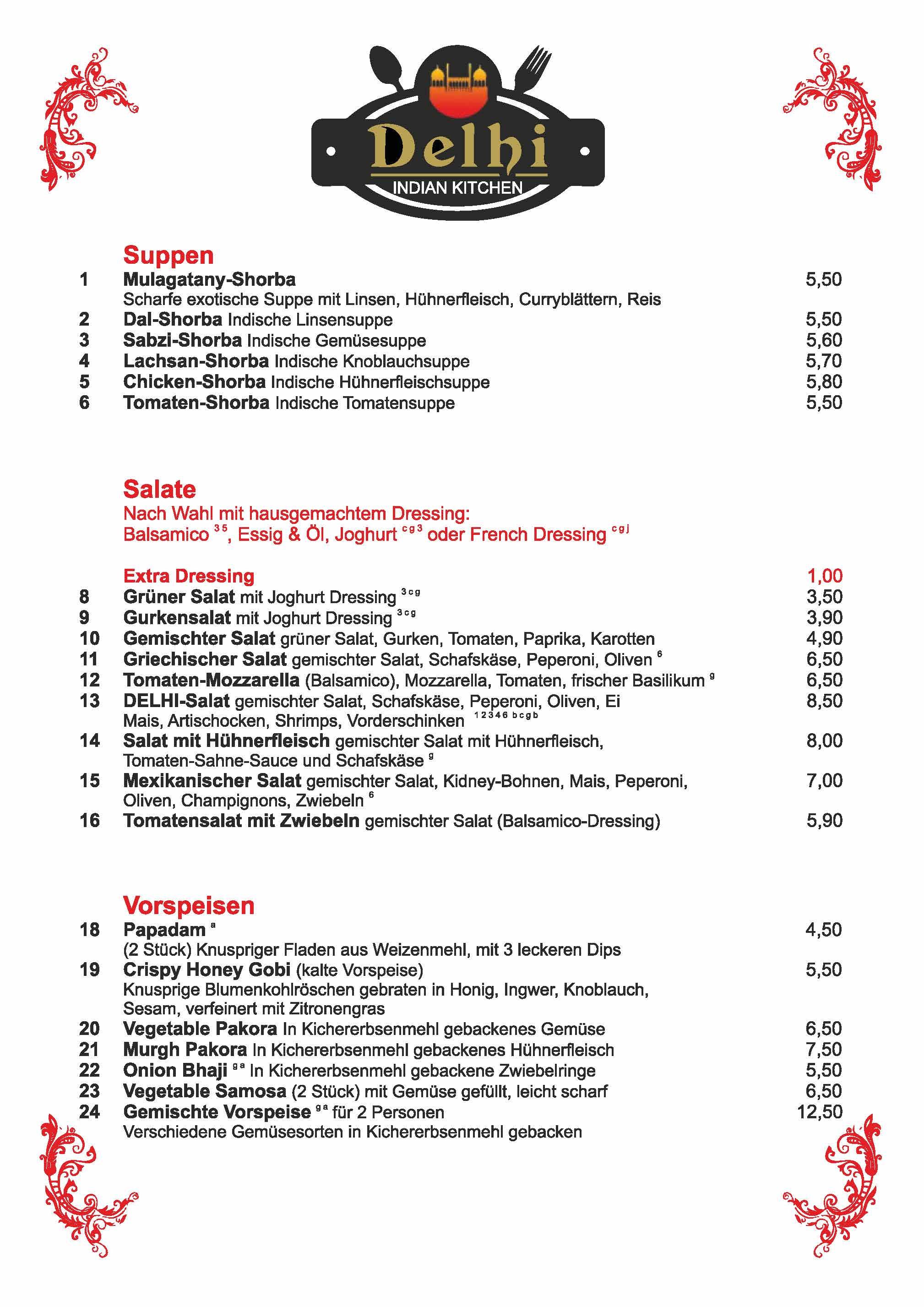 Speisekarte Delhi Dachau