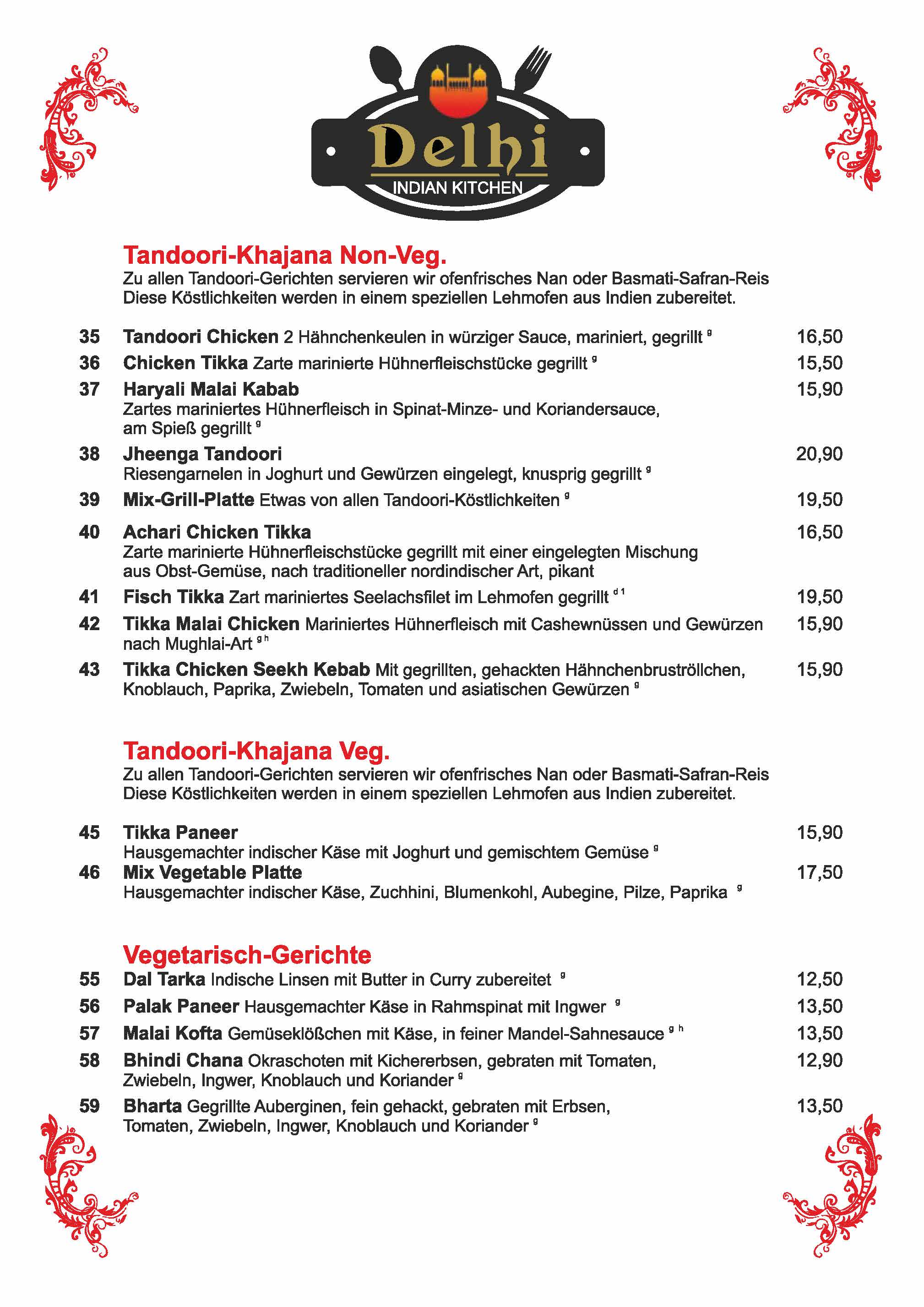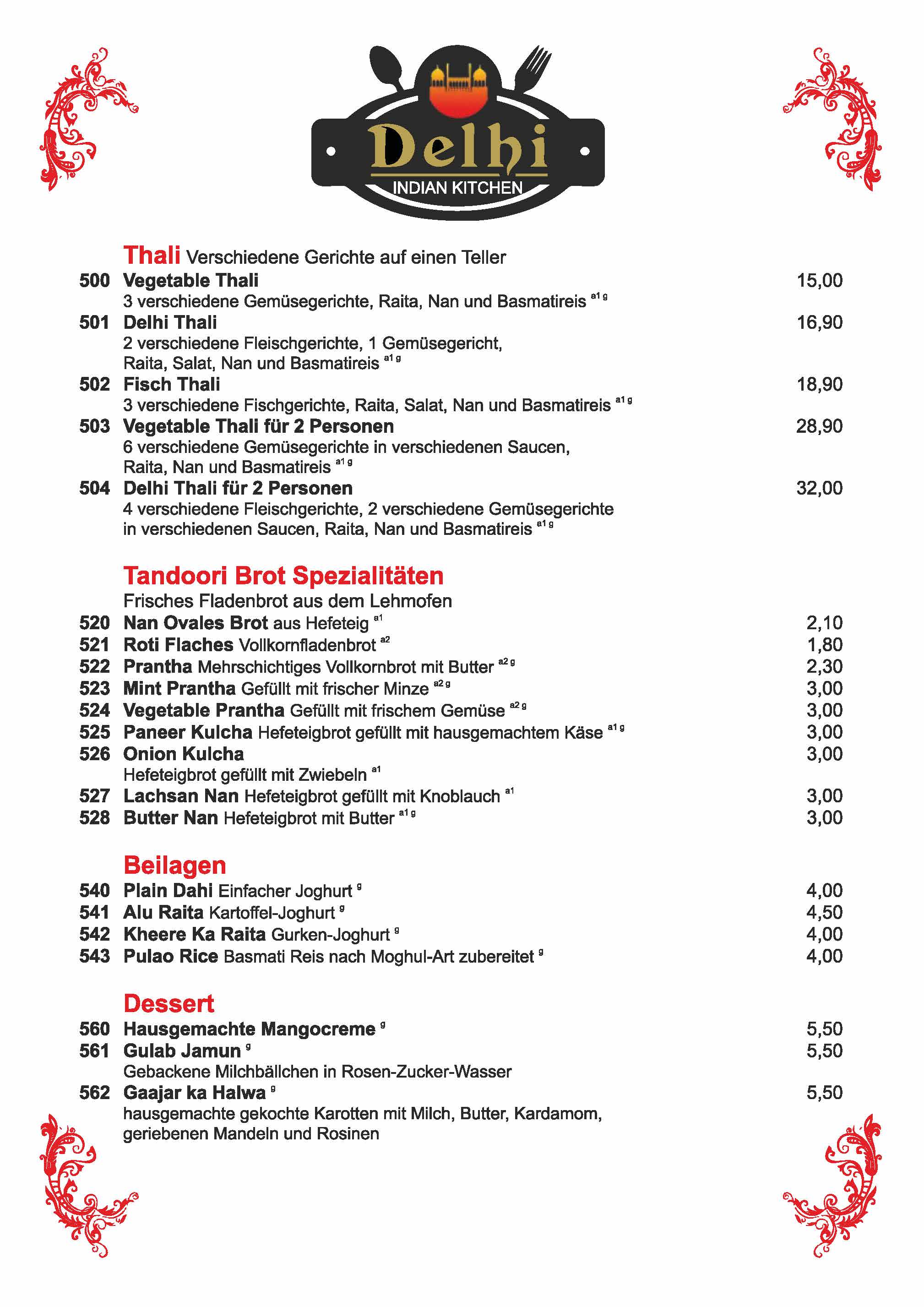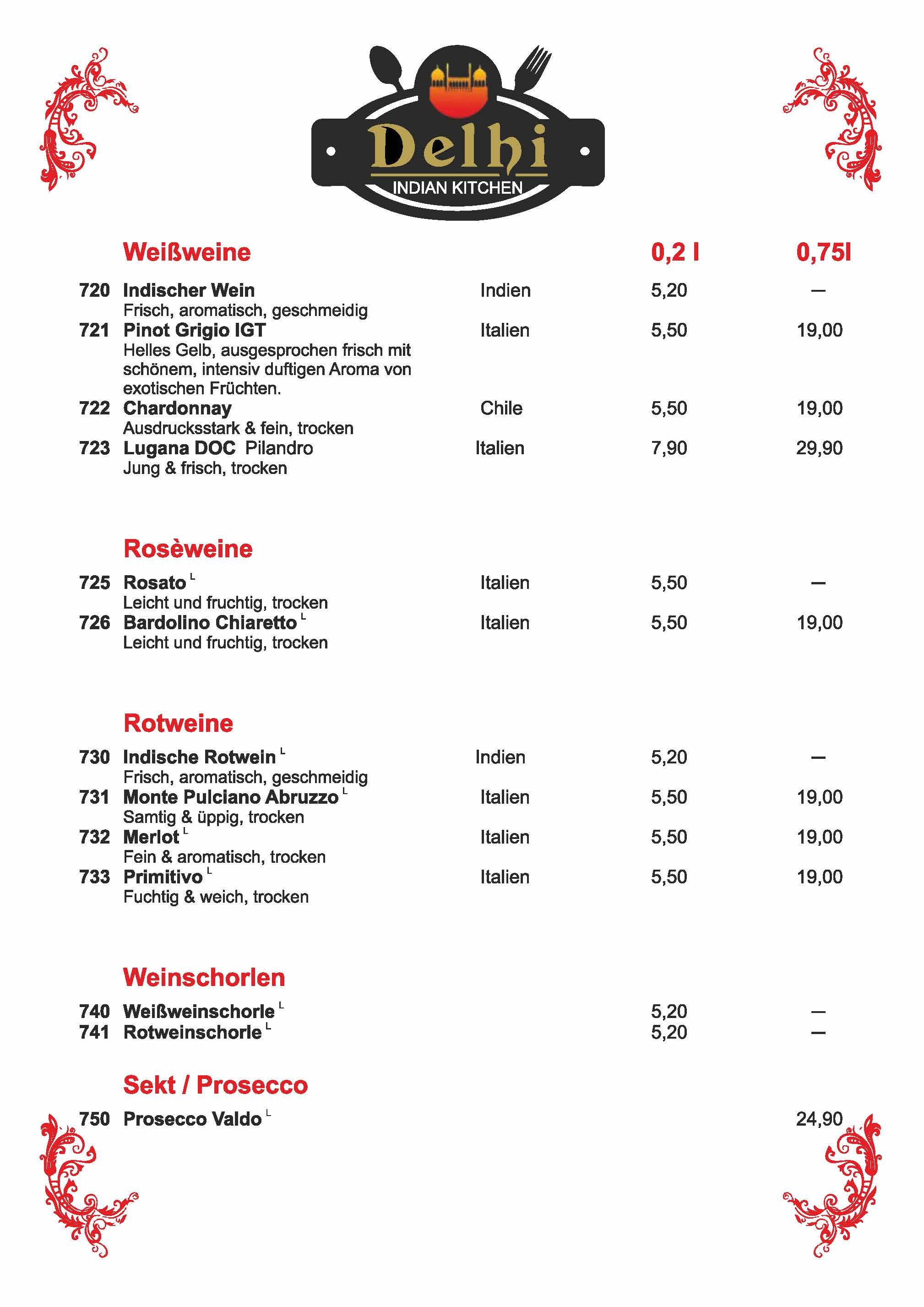 Speisekarte Delhi Dachau