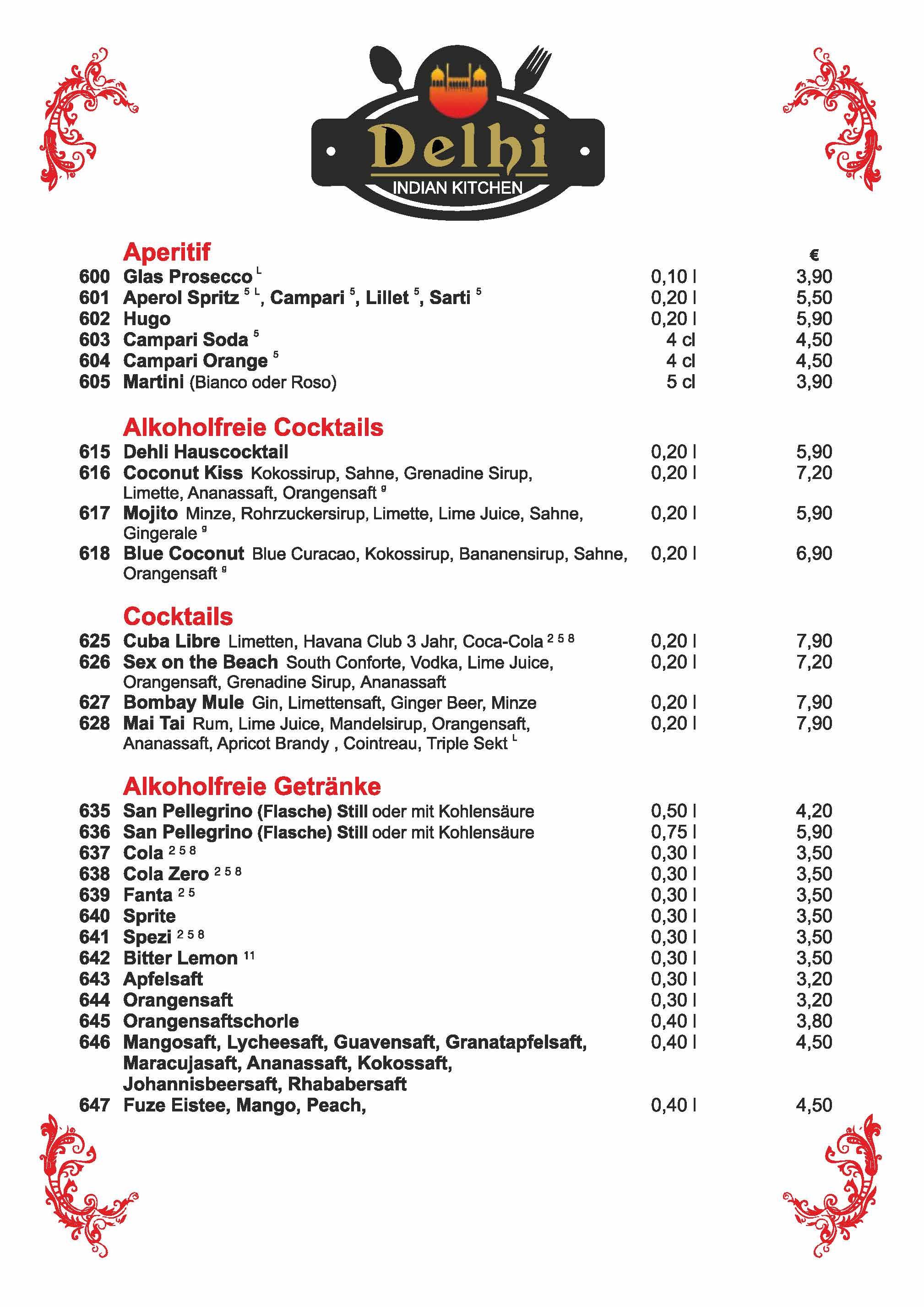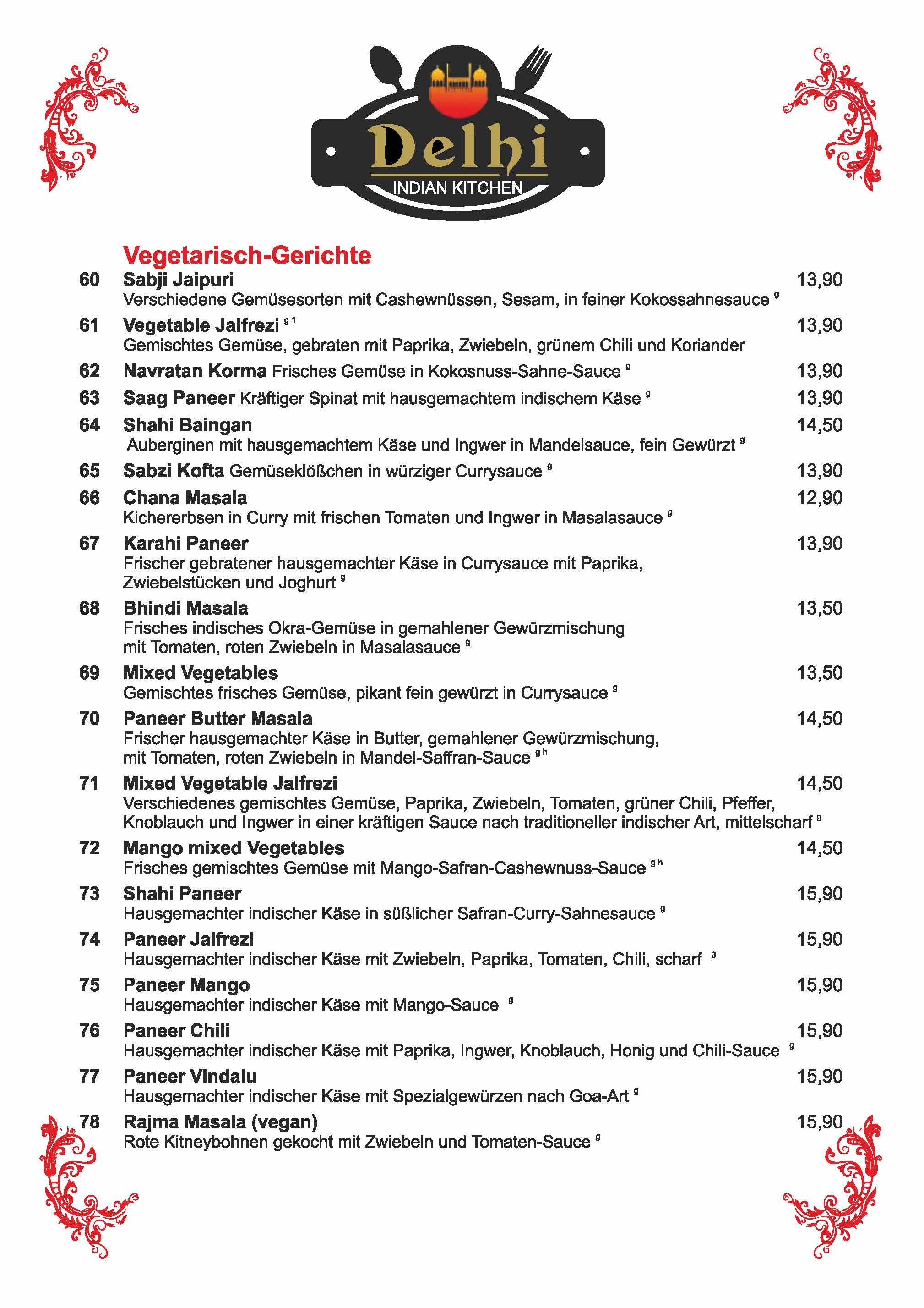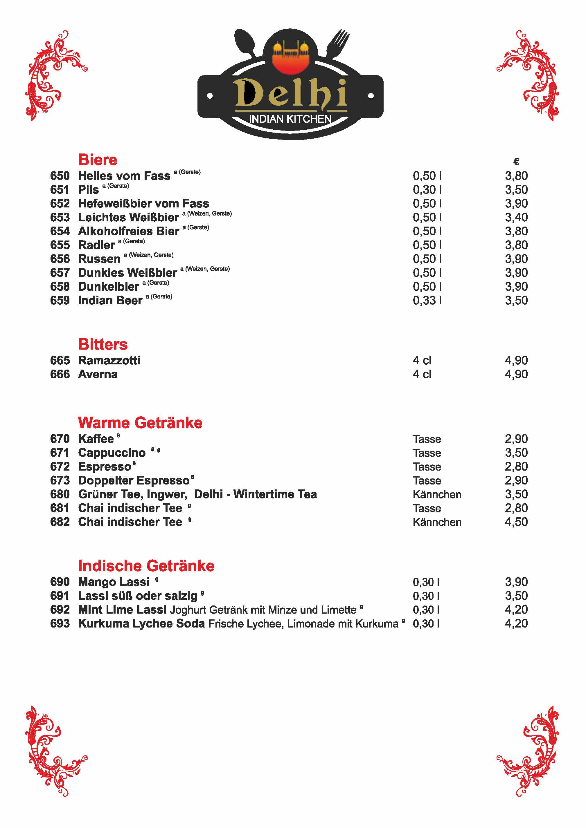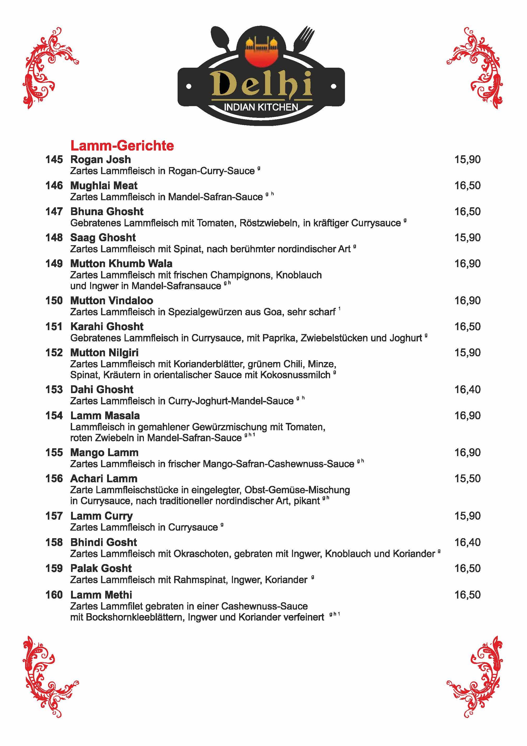 Speisekarte Delhi Dachau